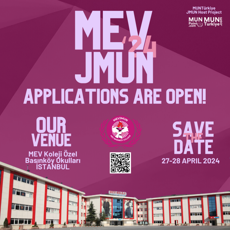 MEV Koleji Özel Basınköy Koleji’nin ev sahipliğinde gerçekleştirilecek olan MEVJMUN konferansı için heyecanlı bir duyuru! 27-28 Nisan 2024 tarihlerinde düzenlenecek bu etkinlik, Birleşmiş Milletler modeli kapsamında ortaokul öğrencilerini dünya meseleleri üzerine düşünmeye ve çözümler üretmeye davet ediyor. Konferansın resmi dili İngilizce olacak, böylece genç delegeler uluslararası bir platformda fikirlerini paylaşma fırsatı bulacaklar.